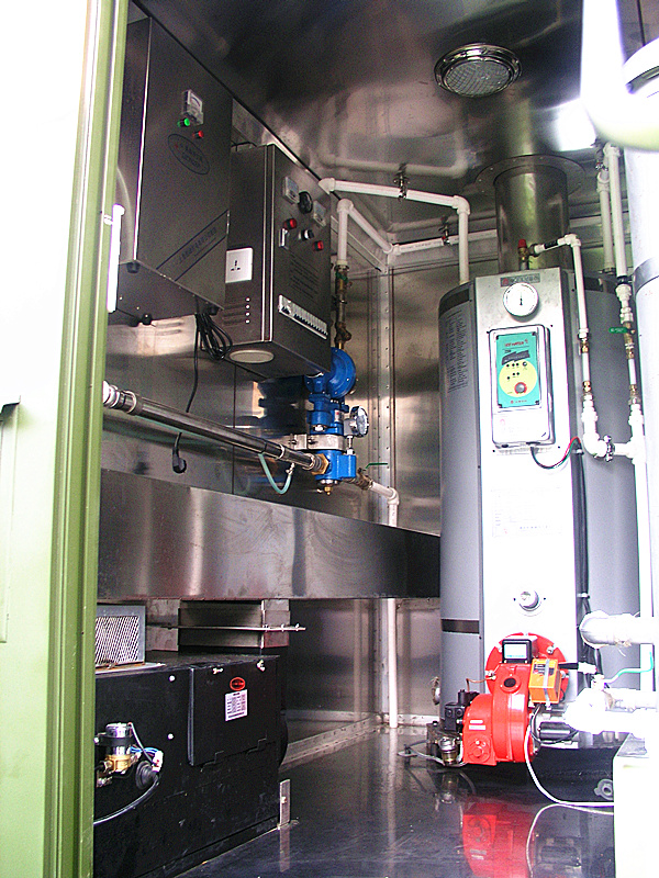 一、用途 主要用于野外條件下人員的洗浴保障。 二、作業(yè)能力 每小時可供48人次進(jìn)行溫水洗浴??蓪⒑?、庫中的水抽出,經(jīng)淋浴車的凈水裝置凈化后,加熱供洗浴用。采用紫外線與臭氧發(fā)生器進(jìn)行殺菌消毒,可與2立方米軟體貯水罐及暖風(fēng)機(jī)配套使用。 三、主要配置: 更衣帳篷、凈水器、燃油鍋爐、自發(fā)電系統(tǒng)和暖風(fēng)機(jī)。